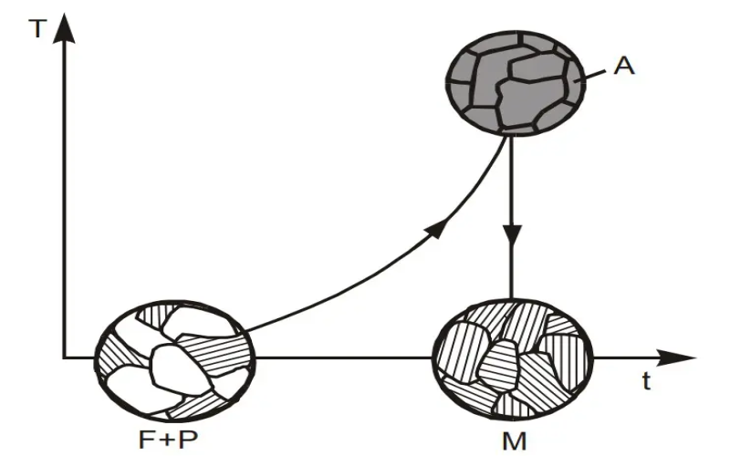 هنگام حرارت دادن فولادهای هایپریوتکتیک به بالای Ac1 و نه Ac3، مقداری فریت در ساختار باقی میماند که سختی را کاهش میدهد. برای فولادهای هیپراوتکتیک، بهینه است که فولاد به دمایی بین محدوده فازی Ac1 و Acm گرم شود تا سیمانیت ثانویه در کنار مارتنزیت در ساختار باقی بماند. در صورتی که از Acm فراتر برویم، خطر تشکیل ساختار دانه درشت پس از آبدهی وجود دارد که باعث شکننده شدن فولاد میشود.